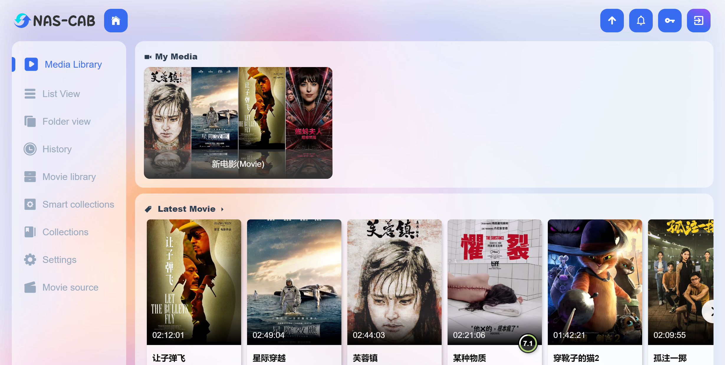 NasCab支持几乎所有视频文件格式,包括蓝光原盘文件(BDMV),并且可以根据文件名自动匹配海报
